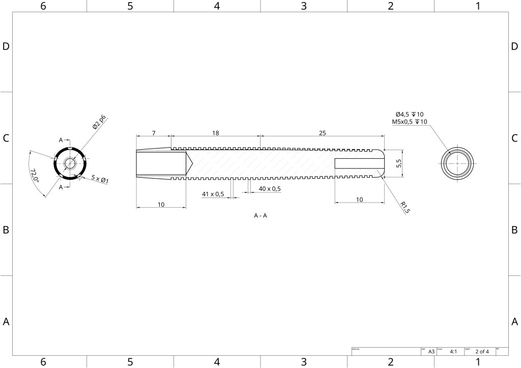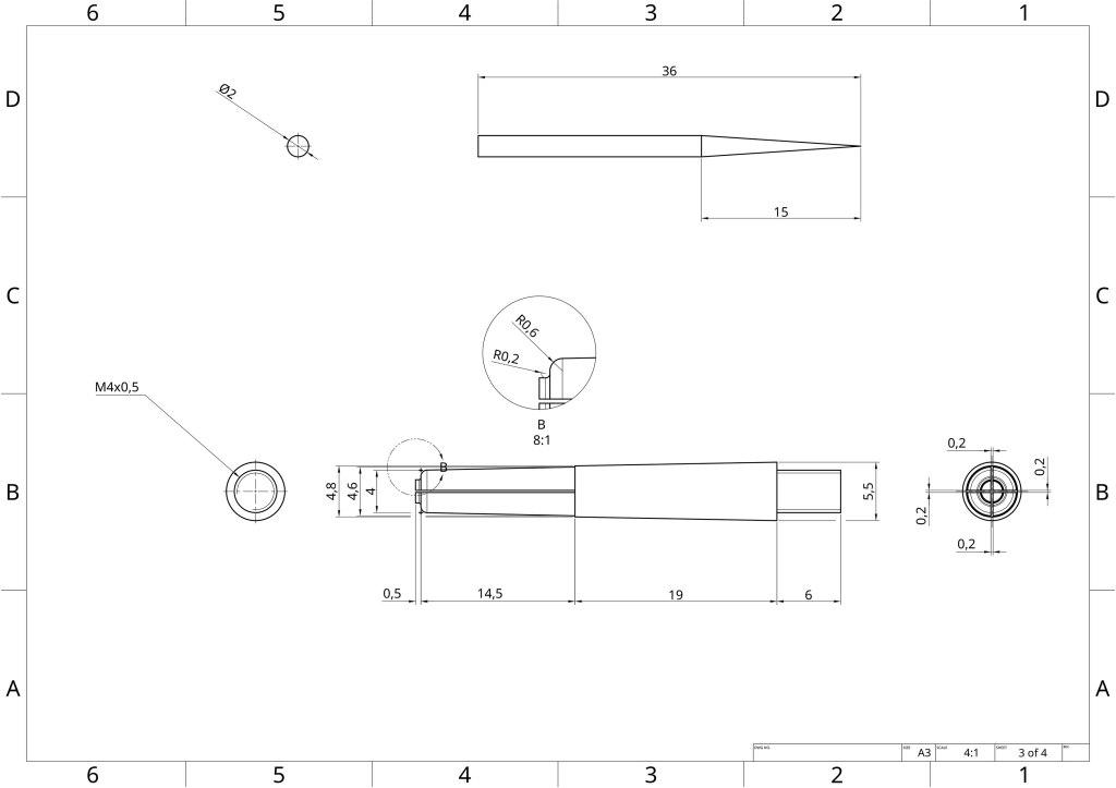Since the two parts were threaded together, it occurred to me that this would be a great challenge to deepen my understanding of Onshape. The final assembly consists of four parts, as shown in the technical drawings below.
